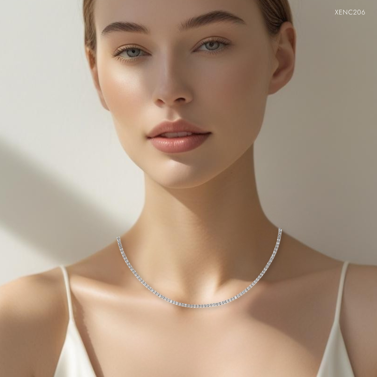 Drape yourself in brilliance with the Eternal Sparkle Classic Tennis Necklace, featuring 5.83 carats of hand-selected natural diamonds set in radiant 18kt gold.